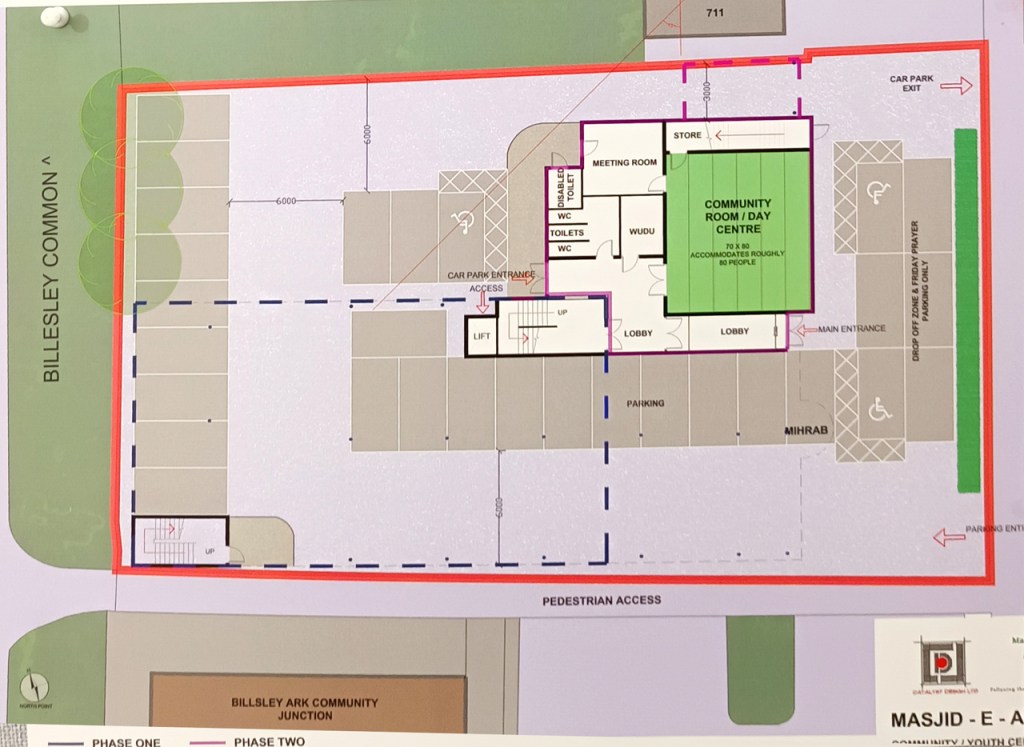 - the car parking layout to the front of the masjid