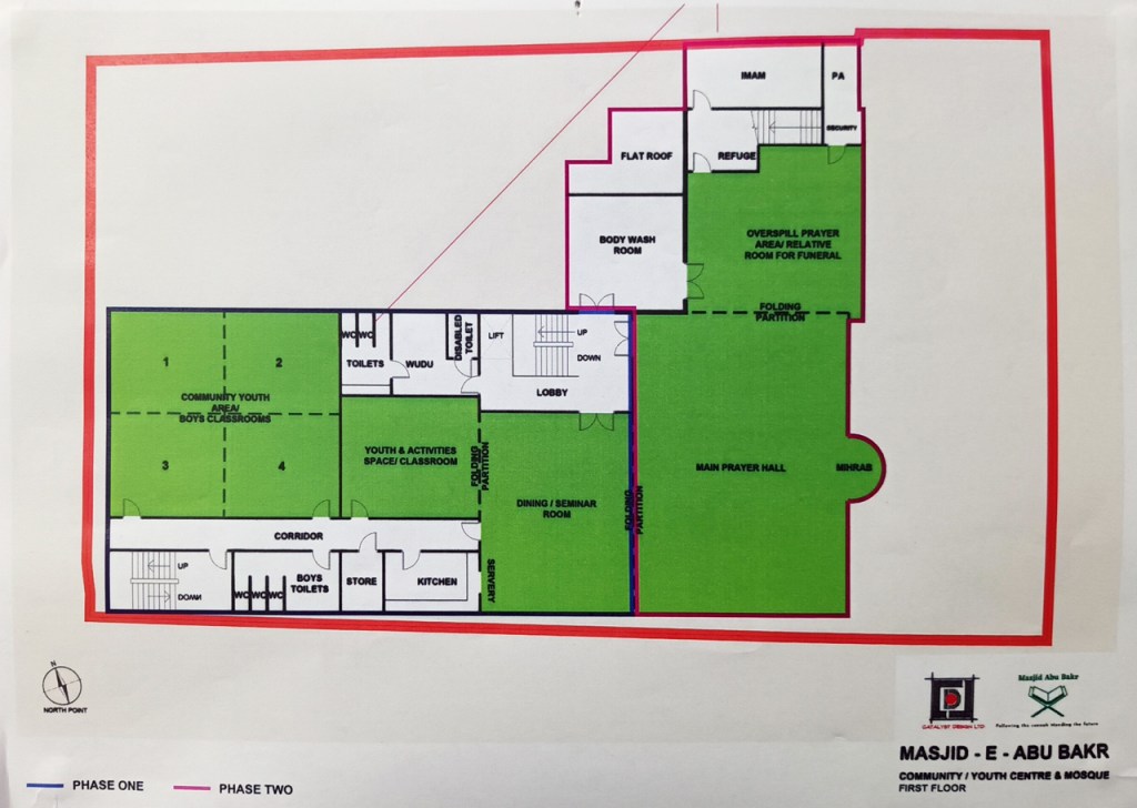 Our masjid rebuild project is an ambitious three-phase plan, with an estimated cost of £1,500,000 for Phase 1. This new facility is designed to serve our growing community better and provide a multitude of services.